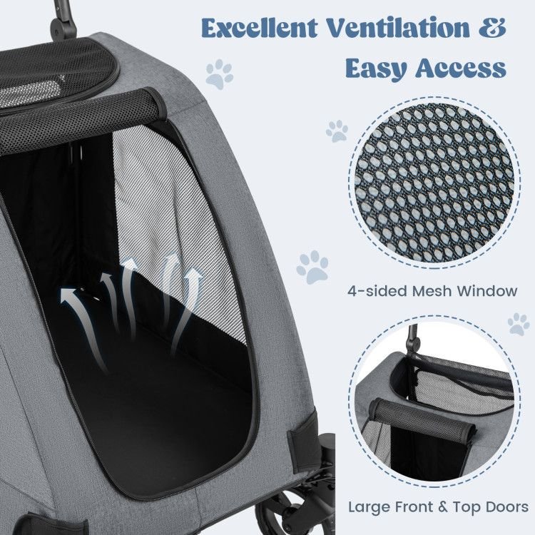 4 Wheels Extra Large Dog Stroller Foldable Pet Stroller with Dual Entry